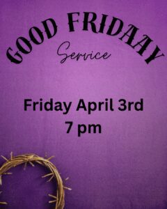We will have our traditional Good Friday Service at 7 pm.